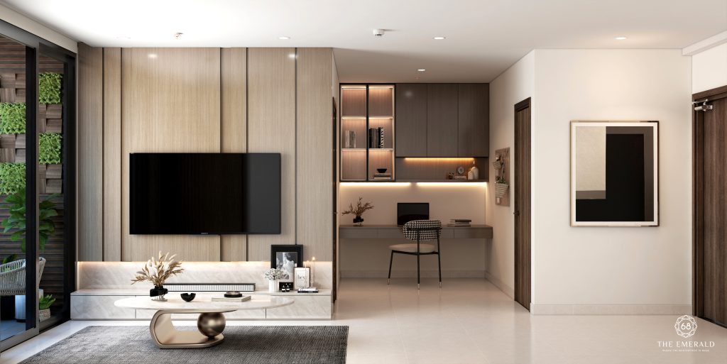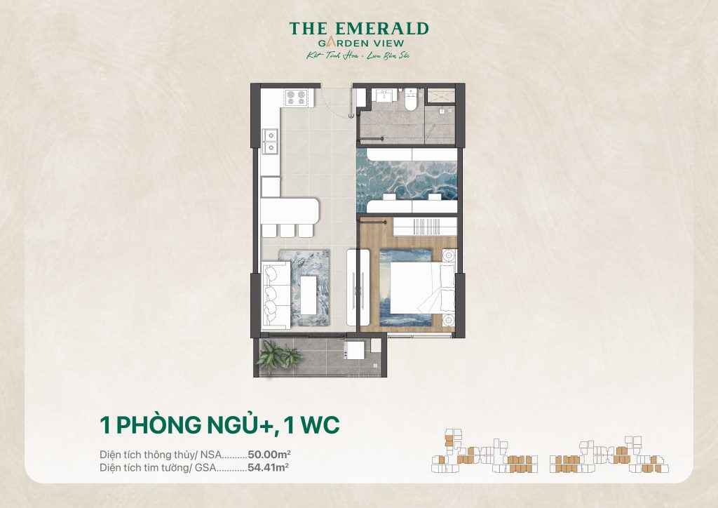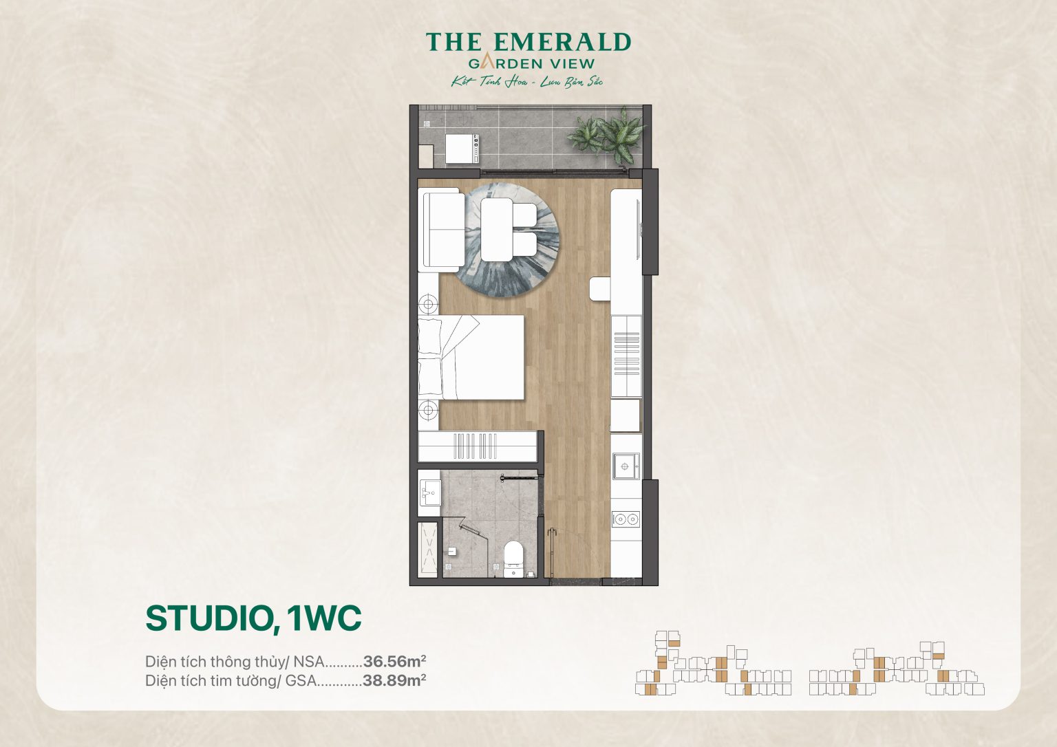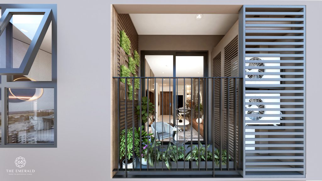 Các sản phẩm tại The Emerald Garden View thiết kế 100% đều có ban công, kể cả căn 1 phòng ngủ, giúp thông thoáng khi sinh hoạt. Bảo chứng chất lượng bởi Công ty Cổ phần Đầu tư Xây dựng SOL E&C
